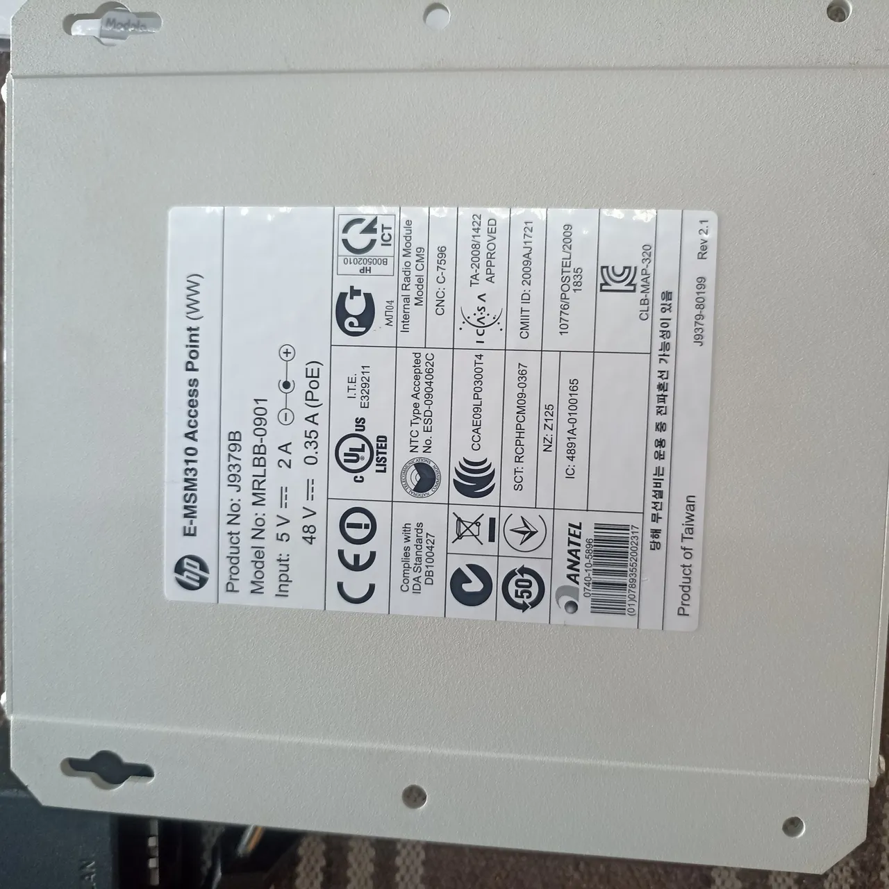HP E-MSM310 2 portas RJ-45 10/100 J9379B Modelo: J9379B Tecnologia: Wi-Fi 802.11a/b/g Velocidade máxima: até 54 Mbps Frequência: 2,4 GHz e 5 GHz Portas: 2 portas Ethernet 10/100 Mbps Antenas: Omnidirecionais internas Segurança: WPA/WPA2, 802.1X Certificações: CE, FCC, IC Observação - acompanha um tempo injetor Põe.