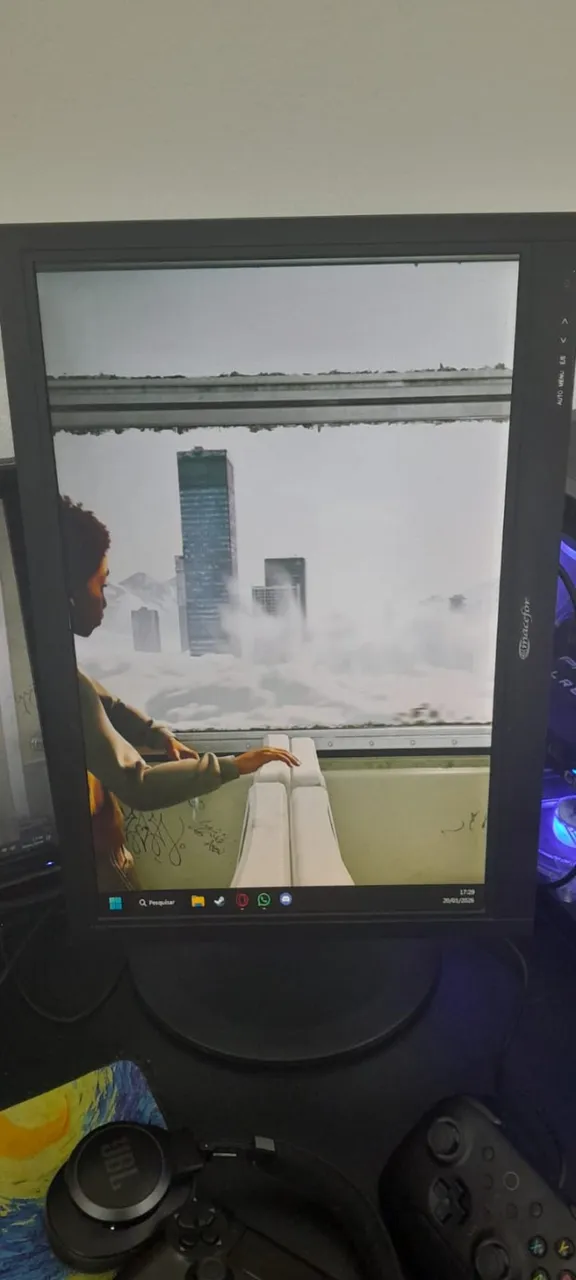 Monitor de 19 polegadas com base giratória e ajuste de ângulo. Entradas VGA e DVI.