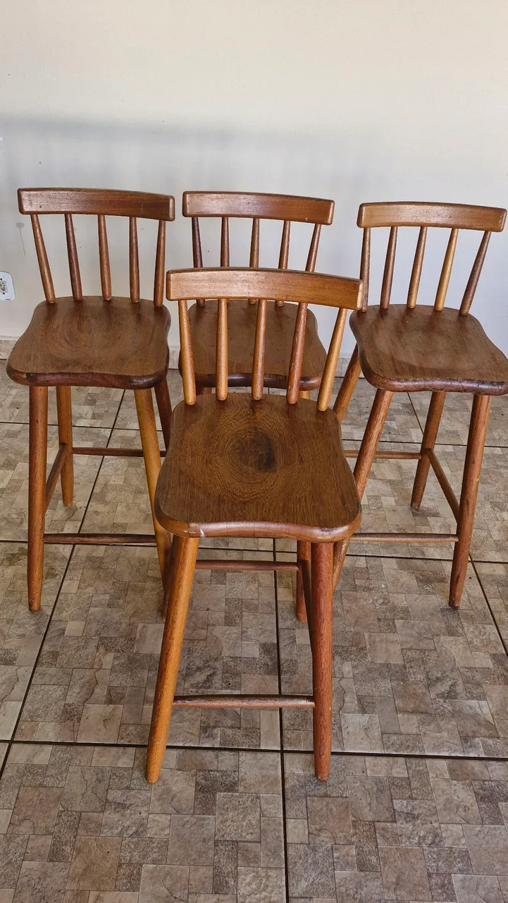 Conjunto de banquetas de madeira com design clássico e elegante. Perfeitas para adicionar um toque de charme e sofisticação à sua casa. Conforto e beleza em um só produto!