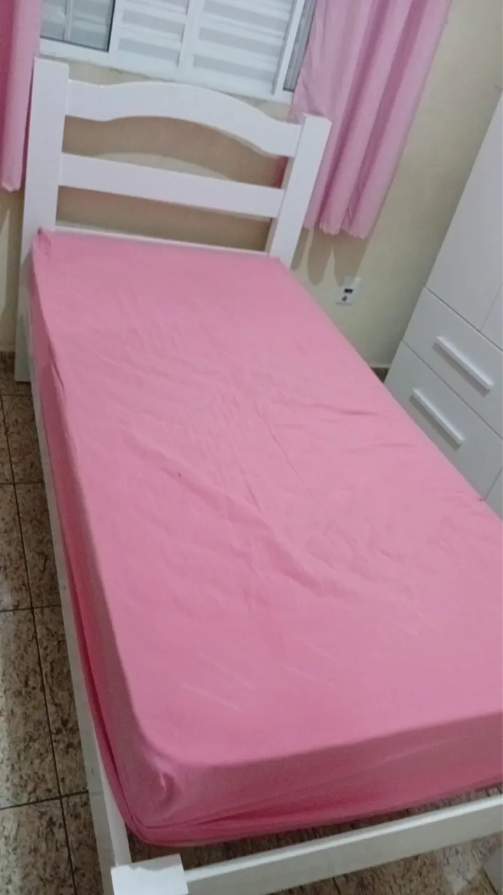 Cama de solteiro confortável com design moderno e elegante. Ideal para um quarto aconchegante e relaxante. Acompanha colchão que também está novo!