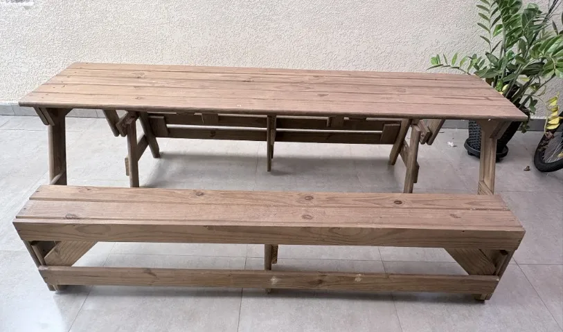 Transforme seu espaço com este incrível banco que se converte em mesa! Perfeito para áreas de lazer, piqueniques ou para otimizar o espaço em sua casa. Design rústico e funcionalidade em um só produto.