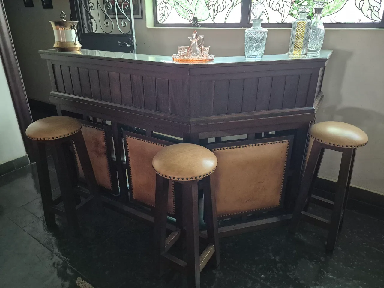 Desfrute de momentos especiais com este elegante bar em madeira maciça. Com design sofisticado e detalhes em couro, é perfeito para receber amigos e familiares com estilo. Um móvel que combina funcionalidade e beleza, ideal para criar um ambiente acolhedor e charmoso.
