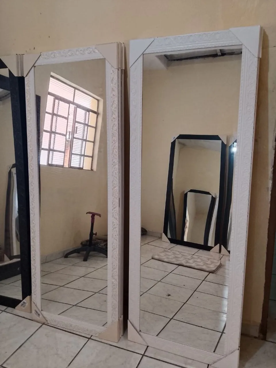Espelho de corpo inteiro com moldura elegante. Ideal para deixar seu ambiente mais sofisticado e funcional.