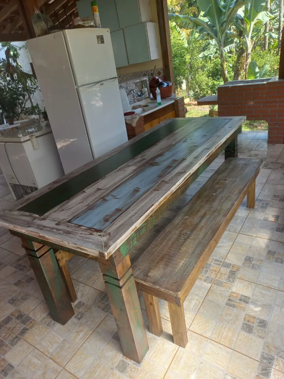 Mesa de 2x1 com dois bancos. Produtos novos fabricação própria.