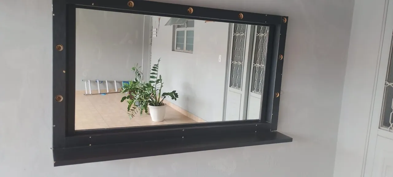 - Espelho com bancada, medindo 1,78 x 0,98 - Cadeira de cabeleireiro ***Brinde carrinho auxiliar organizador **