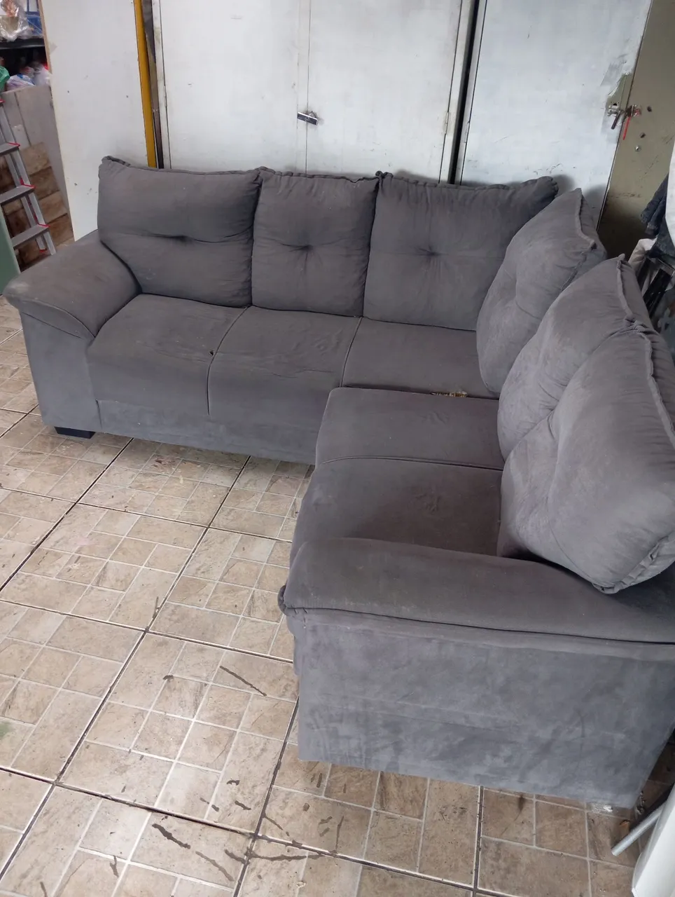 Sofá de canto espaçoso e confortável, ideal para relaxar e receber visitas. Perfeito para otimizar o espaço da sua sala com elegância e praticidade.chama no watts