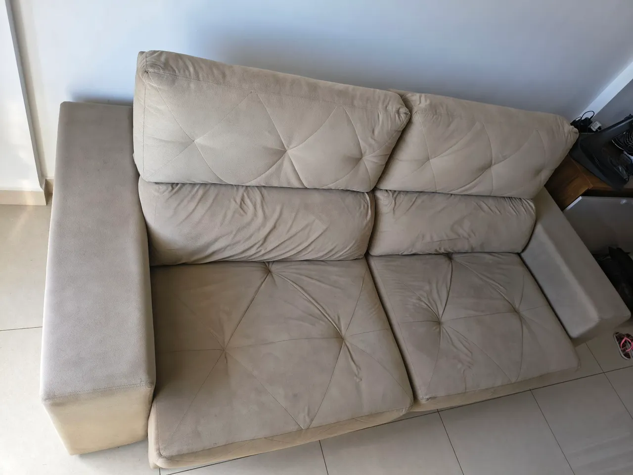 Medidas 230 X 125 X 107 cm (assento recolhido) e 230 X 175 X 107 cm (assento puxado).