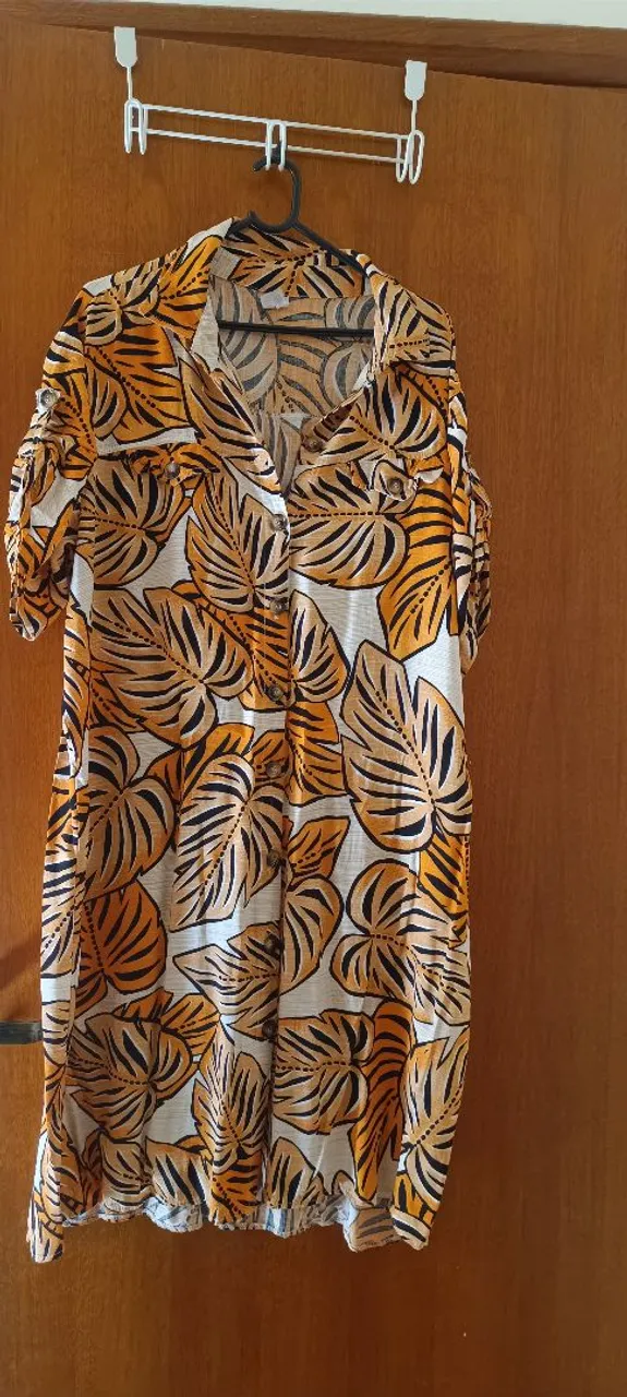 Lindo camisão chemise com estampa de folhas, perfeito para um look leve e moderno. Ideal para diversas ocasiões, combine com acessórios e arrase!