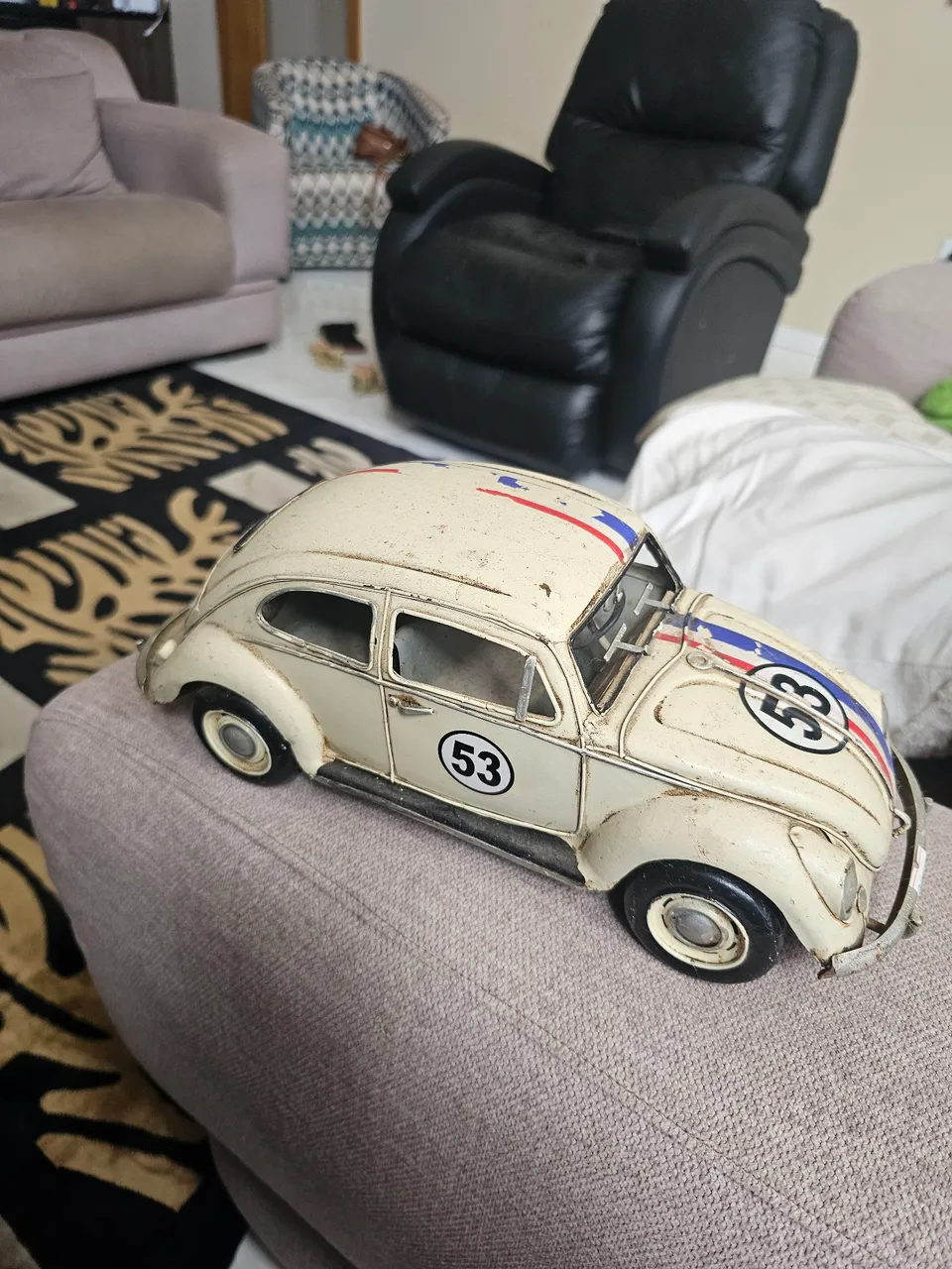 Miniatura do carro Fusca Herbie 53, um clássico dos colecionadores! Perfeito para fãs de carros antigos e do filme. Detalhes incríveis e ideal para decoração.