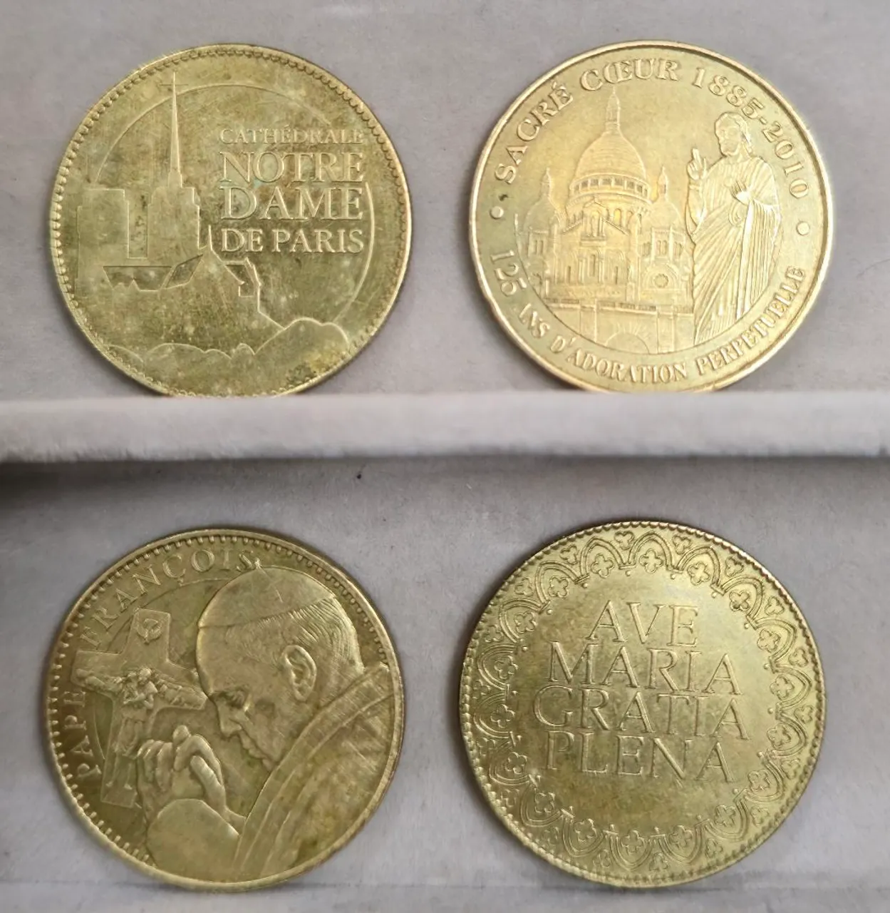 Lote com 4 medalhas antigas, comemorativas e colecionáveis. Possuem detalhes de igrejas e figuras religiosas, um item perfeito para colecionadores e apreciadores de história.