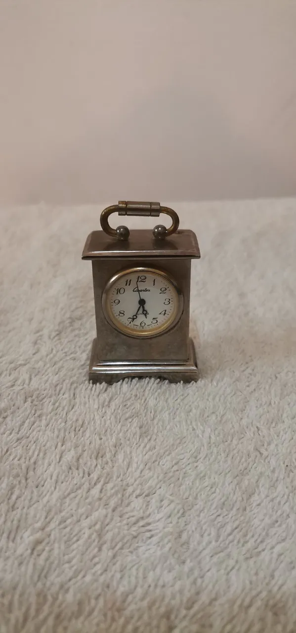 Charmoso mini relógio antigo de mesa, perfeito para adicionar um toque vintage à sua decoração. Com design clássico e detalhes elegantes, este relógio é uma peça única que combina beleza e estilo retrô.