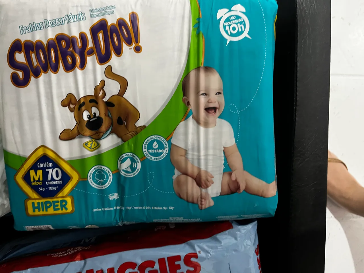 Fraldas descartáveis Scooby-Doo! com 70 unidades, tamanho M, ideais para bebês de 5kg a 10kg. Conforto e proteção garantidos para o seu bebê com a qualidade que você confia.
