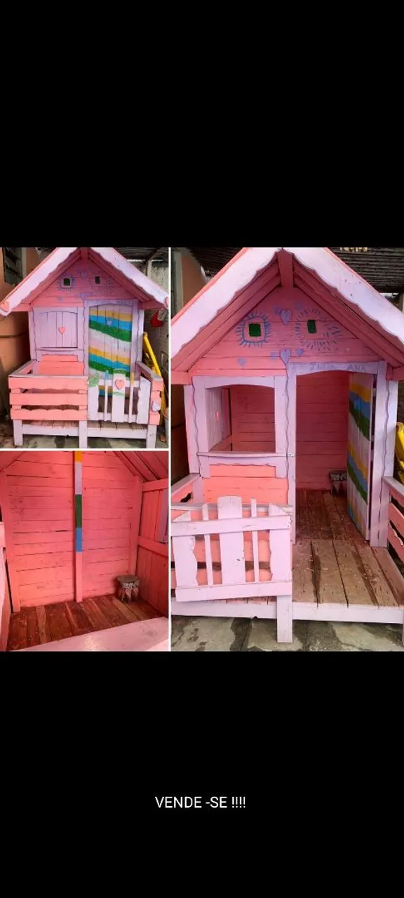 Casinha infantil de madeira, pintada em tom rosa vibrante. Perfeita para estimular a imaginação e a diversão das crianças, com detalhes encantadores e um design charmoso que vai transformar qualquer espaço.