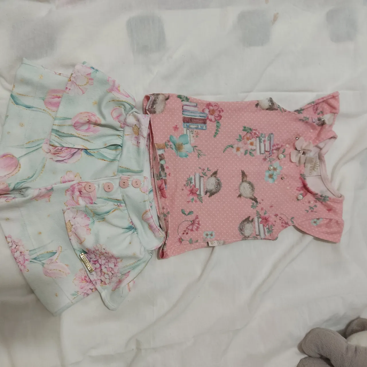 Conjunto infantil com estampas encantadoras de flores e detalhes delicados. Perfeito para deixar sua pequena ainda mais charmosa e confortável.