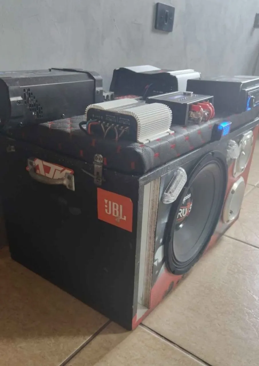 Caixa Bob 12 Pol Painel removível com Módulo Dsp 1600.1 Módulo Ts 400.1 Fonte Bob 200a Barramento de alumínio Strobo ajk programável Rádio Tiger Auto com app Processador PX1 Voltímetro sequenciador Caixa com Woofer 12P Bomber Rush 1000rms Twitter Hst 600 /300 RMS Driver JBL D200x 110 RMS Não aceito trocas. !!!