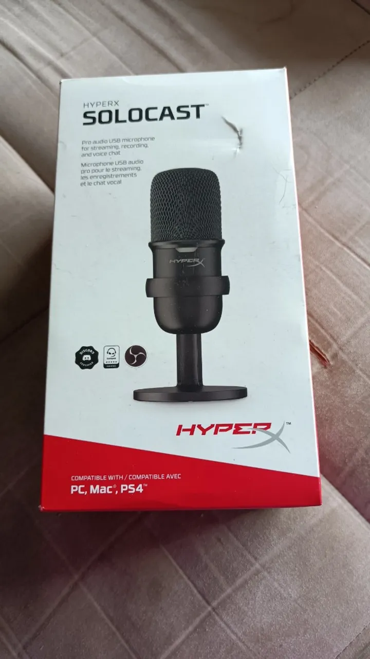 Microfone HyperX Solocast Preto: qualidade de áudio profissional para suas transmissões e gravações. Compatível com PC, Mac e PS4, oferecendo versatilidade e excelente desempenho.