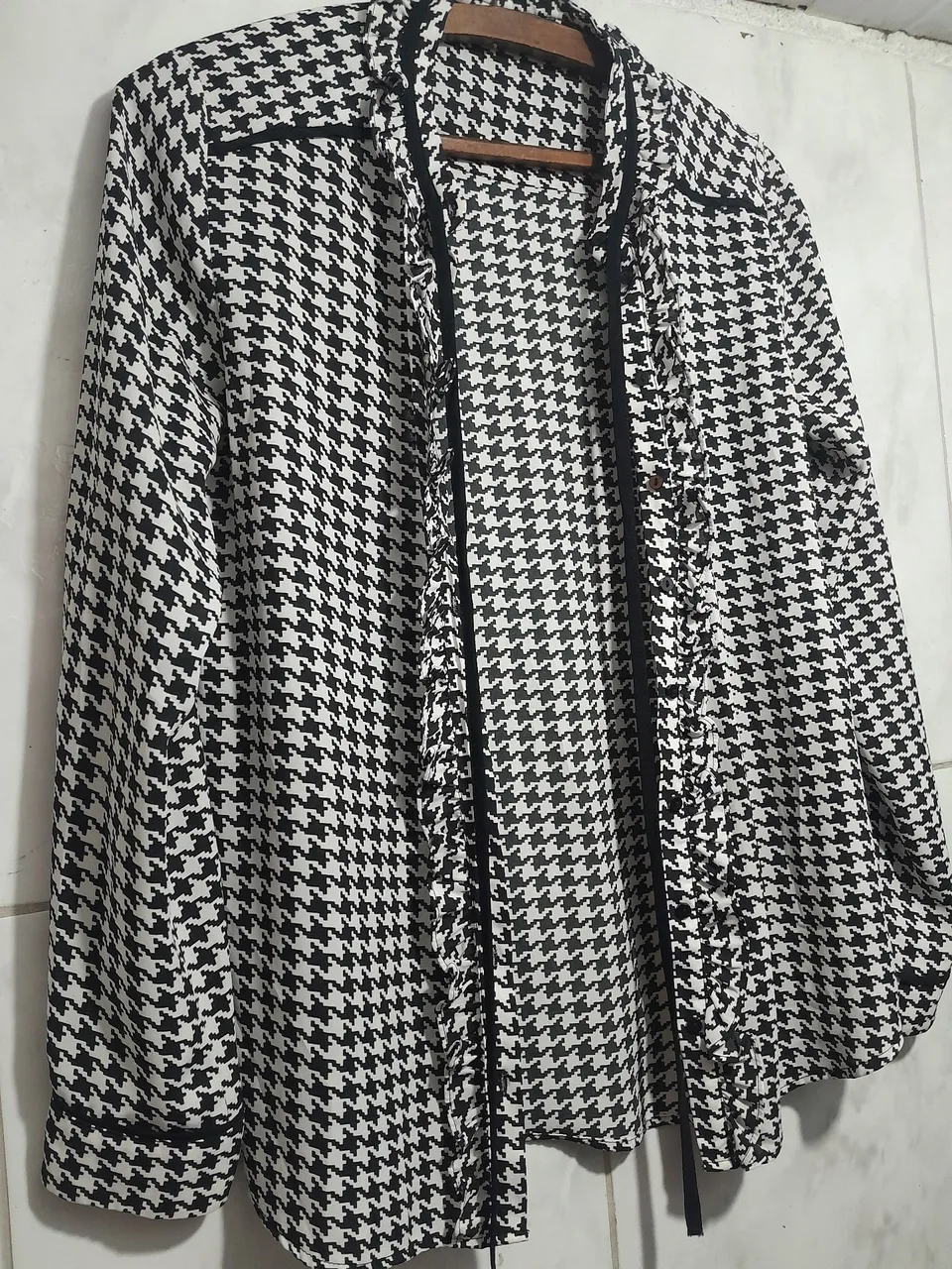 Linda blusa da marca ZARA com estampa clássica de pied-de-poule. Caimento leve e elegante, perfeita para diversas ocasiões.