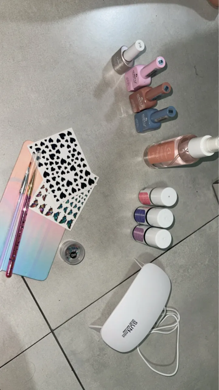 Kit completo de blindagem 4 passo a passo , mine cabine em led , 2 pincéis 2 cartela adesivos e 4 esmalte em gel nunca usados . Valor do anúncio do kit desapego entrego estação Pirituba vila Clarice