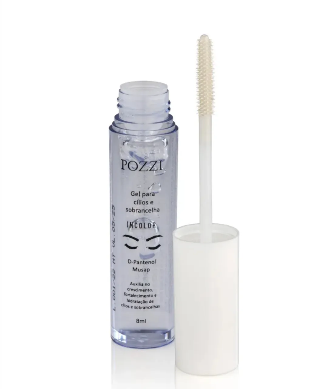 Gel incolor Pozzi para cílios e sobrancelhas com D-Pantenol, auxilia no crescimento, fortalecimento e hidratação , Validade 04/28