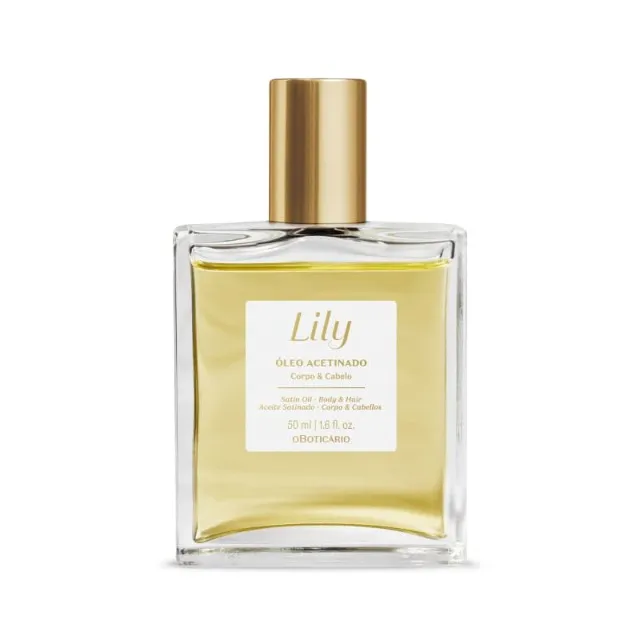 Com a sofisticada fragrância de Lily, o Óleo Acetinado traz uma experiência sensorial única e luxuosa para o seu ritual de cuidados.