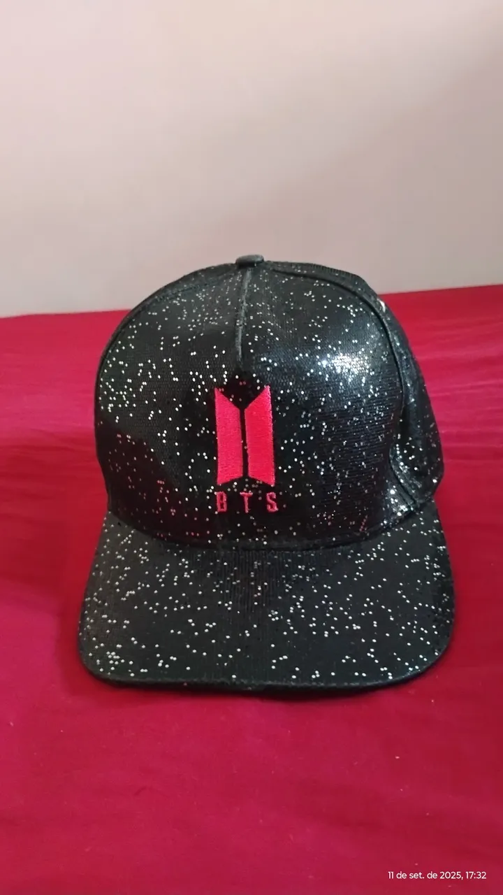 Boné preto com glitter e o logo do BTS bordado. Perfeito para os fãs do grupo! É usado, mas está praticamente novo, usei poucas vezes.