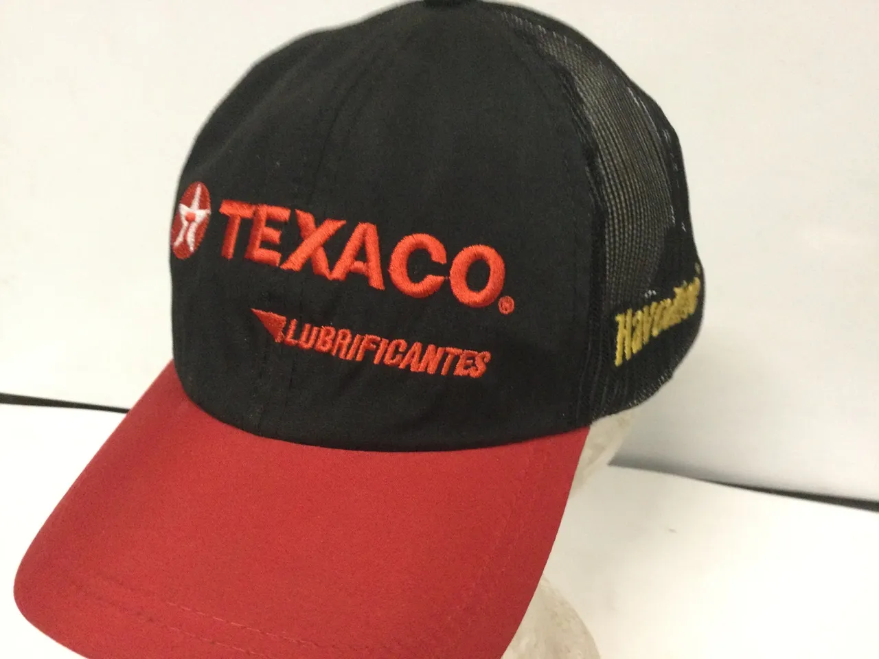 Boné Texaco, novo, na cor preta com detalhes em vermelho e dourado. Ideal para os apaixonados por carros e pela marca Texaco!