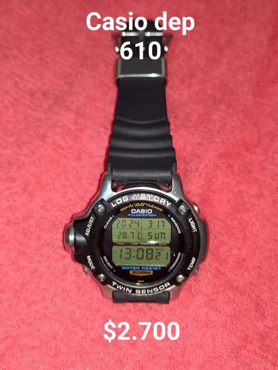 Relógio Casio com sensor duplo para profundidade e temperatura, resistente à água. Design robusto e funcional para diversas atividades.raro item de coleção (OBS trocas considerar 3k