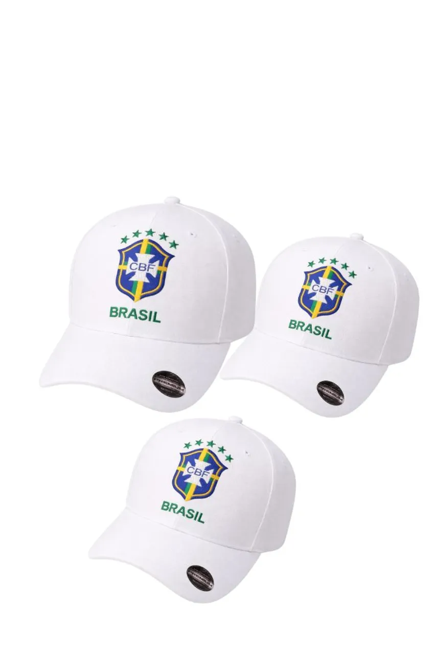 Mostre seu amor pela seleção brasileira com este kit de bonés! Perfeitos para usar em qualquer ocasião, os bonés são confortáveis e estilosos, com o escudo do Brasil bordado.