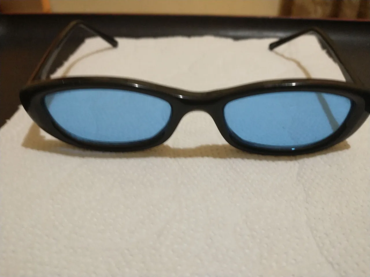 Óculos de sol , lente acrílica azul , armação dobrável preta , modelo D9103 , acompanha estojo. Lente do lado bastante riscada como mostra na última foto