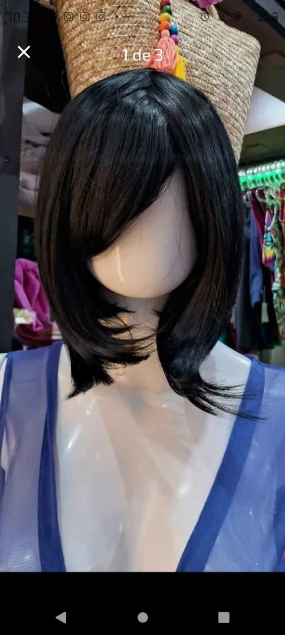 Peruca de cabelo liso Chanel de bico com franjão