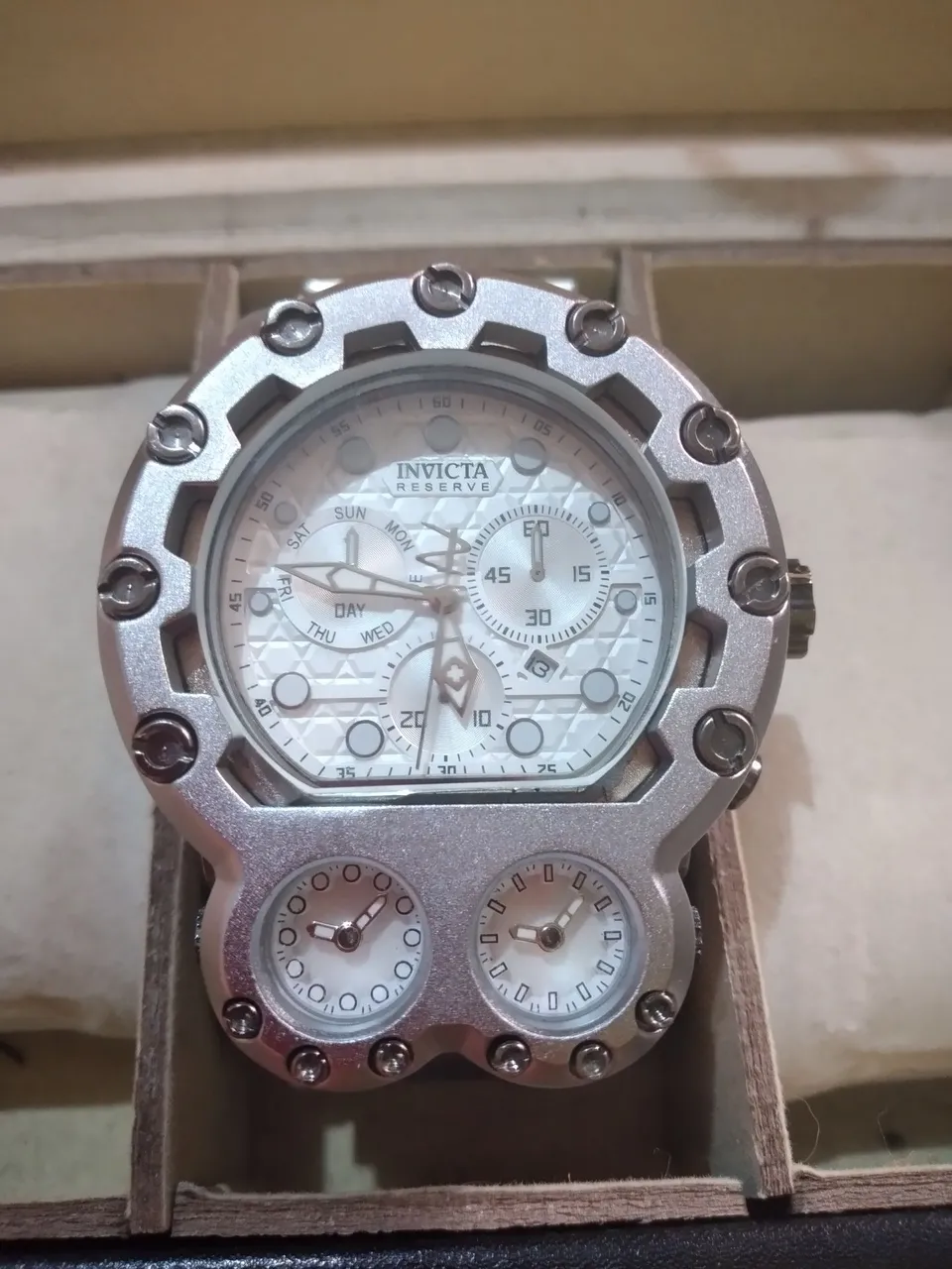 Relógio Invicta prata, design elegante e sofisticado. Perfeito para complementar seu estilo com um toque de luxo e precisão.