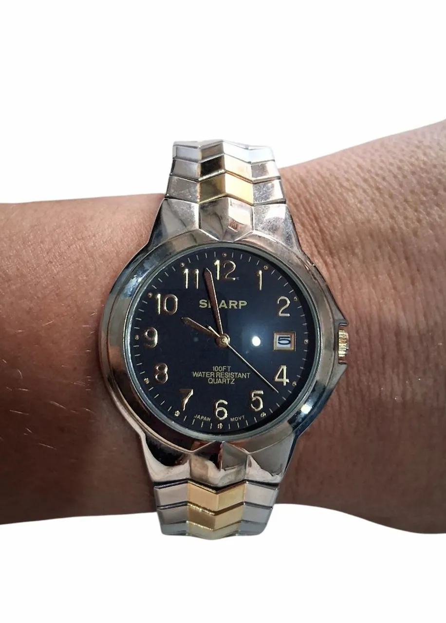 Relógio Sharp, design retrô porém moderno com pulseira elástica em aço. Perfeito para quem busca estilo, funcionando perfeitamente