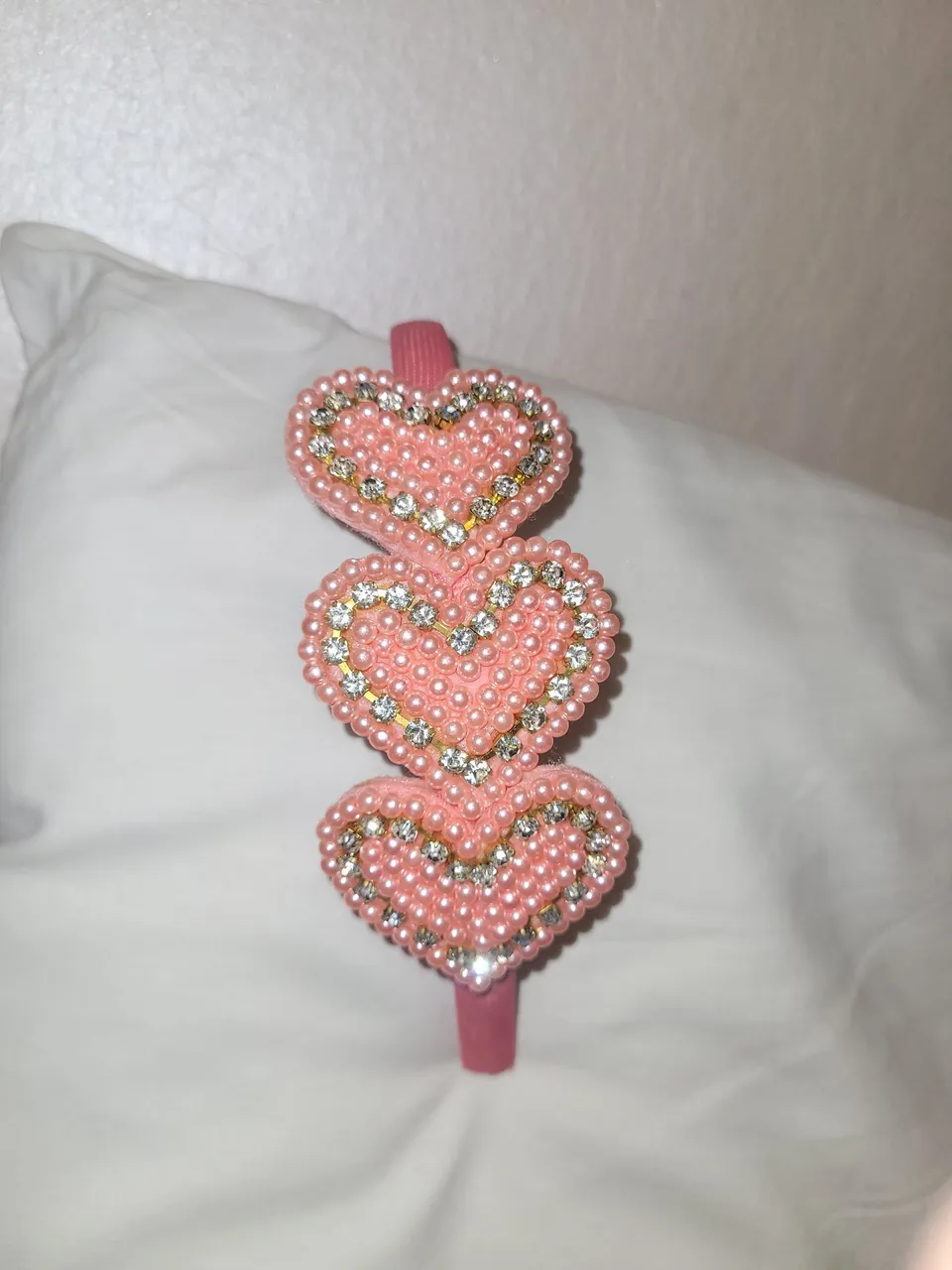 Linda tiara com detalhes de corações em pérolas e strass, perfeita para um toque charmoso e elegante. Ideal para diversas ocasiões!