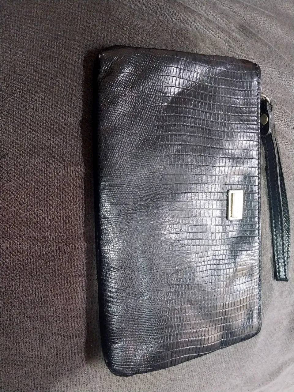 Linda e elegante carteira clutch preta com textura diferenciada