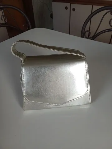 Bolsa de Mão Prata Couro Sintético 18x15 cm Em perfeito estado