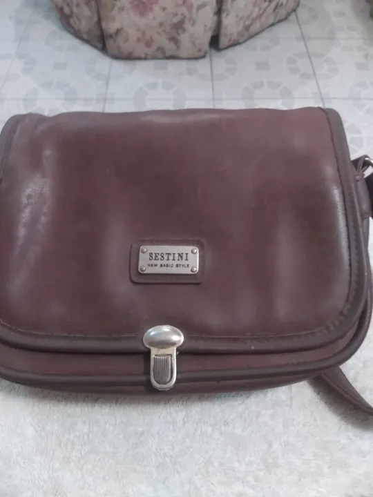 Bolsa Sestini couro em bom estado produto sem arranhões zíper interno alça regulável