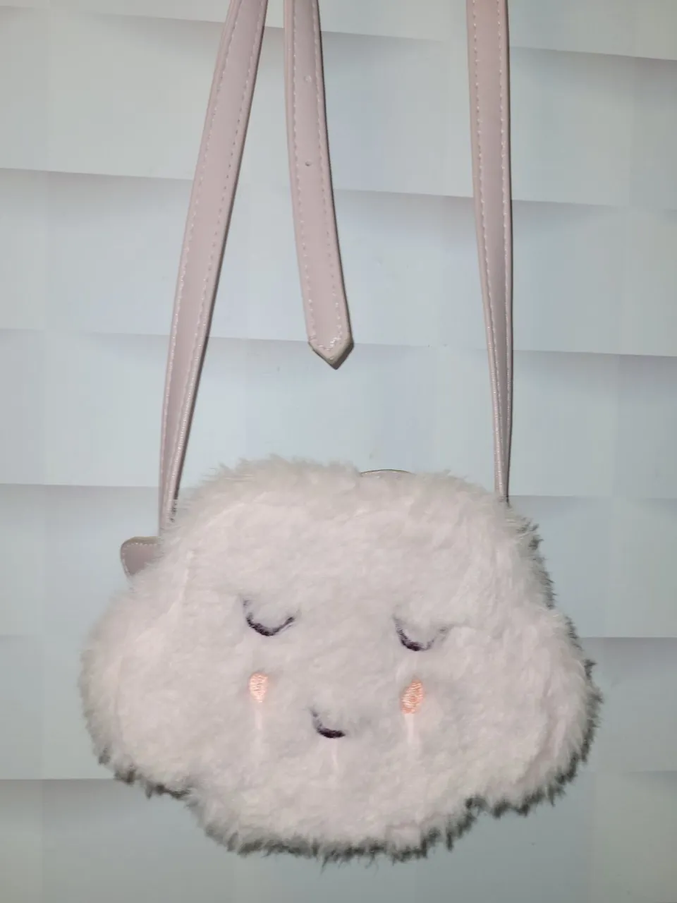 Linda bolsa em formato de nuvem, com detalhes bordados e alça ajustável. Perfeita para quem busca um acessório divertido e estiloso! rosa bem claro