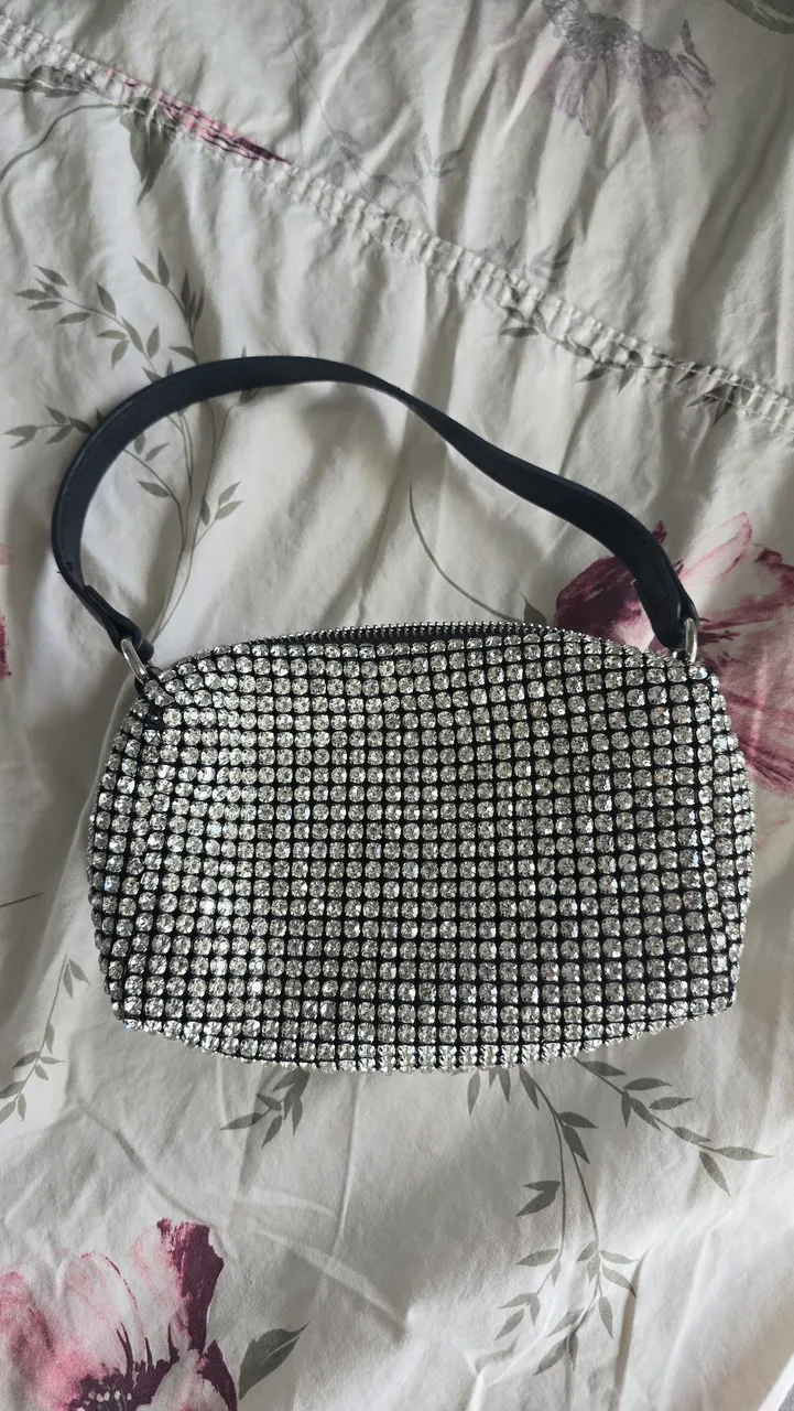 Destaque-se com essa bolsa de strass deslumbrante! Perfeita para adicionar um toque de brilho e glamour a qualquer look. Seja o centro das atenções com este acessório incrível!