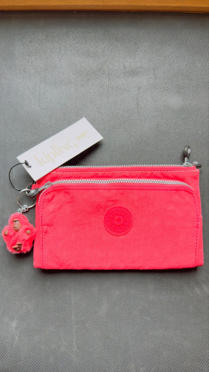 Linda carteira Kipling na cor vermelha vibrante! Perfeita para quem busca praticidade e estilo. Design moderno e acabamento impecável, ideal para o dia a dia. Leve seus pertences com elegância e organização.tamanho 20x12,5.