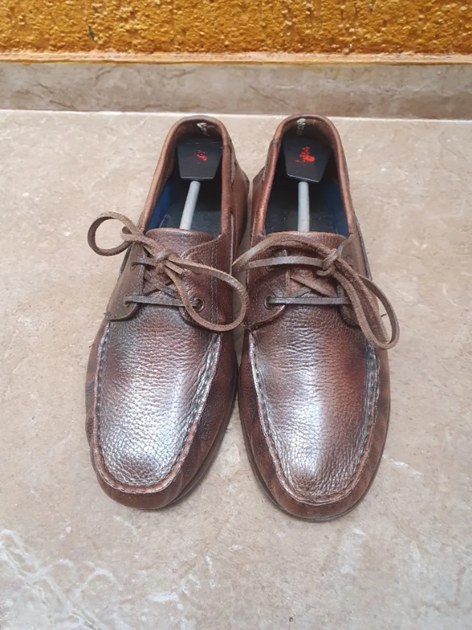 Sapato tipo Dock Sider numeração 41 na cor Havana de couro com solado de borracha antiderrapante Amazonas.