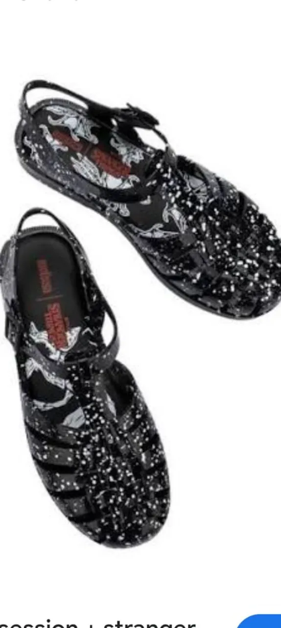 Sandália Melissa com estampa inspirada na série Stranger Things. Design moderno e confortável para um visual único. Nova nunca usada