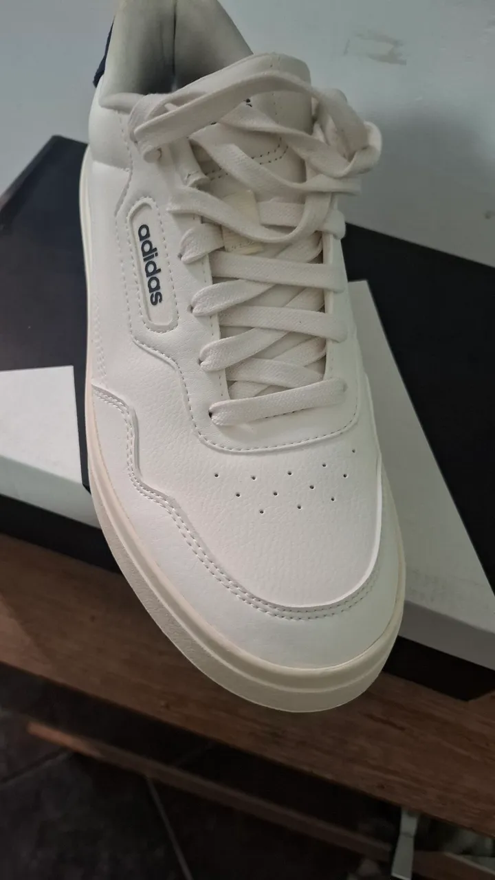 Tenis Adidas branco, um clássico que nunca sai de moda! Conforto e estilo para qualquer ocasião. Não perca essa oportunidade!