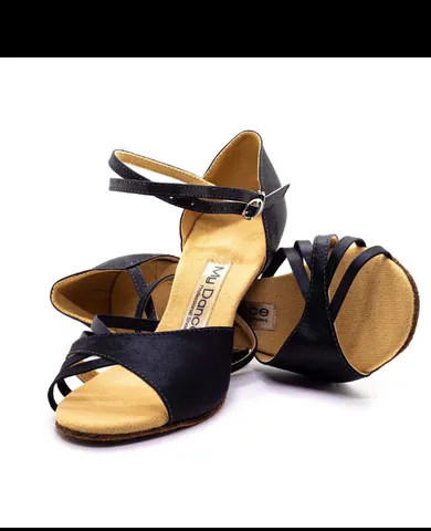 Sandalia dança de salão, fechada no calcanhar e tiras cruzadas sobre o peito do pé para maior controle e segurança nos movimentos. Solado em couro camurça, salto 7 cm. Usei apenas em um ensaio, e mudei de idéia qto a cor .