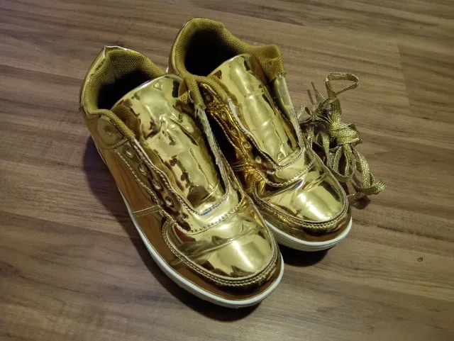 Tênis dourados que garantem um visual único e cheio de personalidade! Perfeitos para quem busca um toque de ousadia e brilho em cada passo.