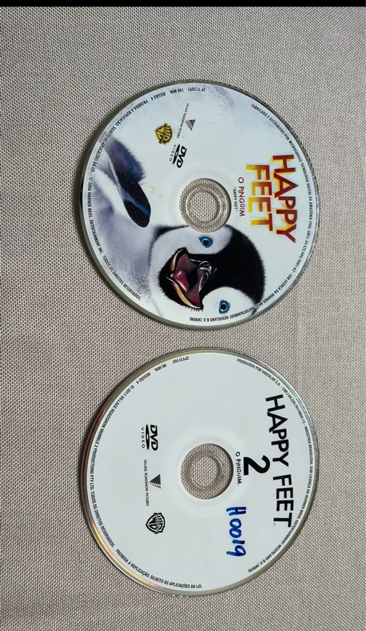 DVDs do filme Happy Feet e Happy Feet 2, em ótimo estado de conservação. Diversão garantida para toda a família! OBS: com capa e encarte reimpresso