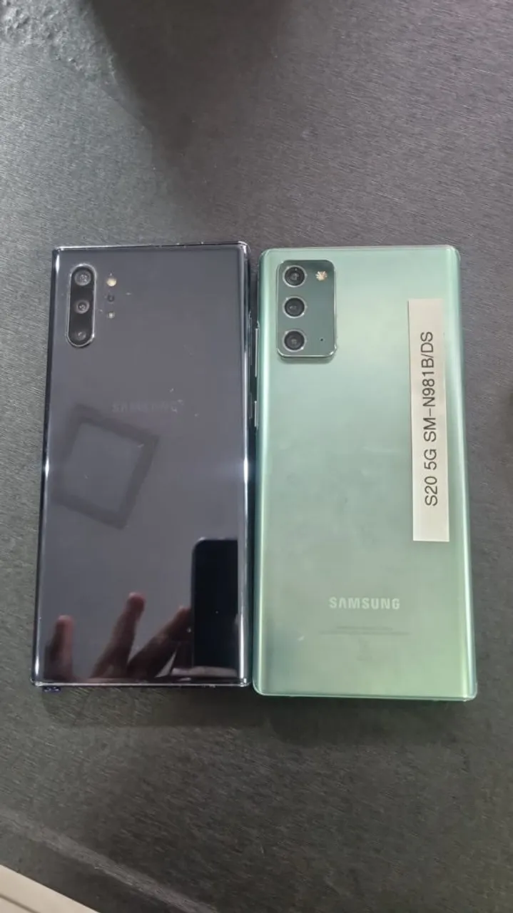 Celulares,samsung note 10+ e samsung S20 5g,ambos com defeito na tela,porem otimo para retirada de peças ou até mesmo para concerto,s20 zero riscos
