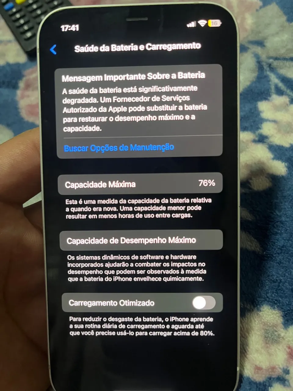 iPhone 12 em perfeito estado, com funcionamento impecável! Aproveite a tela vibrante e o desempenho rápido para todas as suas tarefas. Câmeras incríveis para fotos e vídeos de alta qualidade. Bateria com capacidade máxima de 76%.