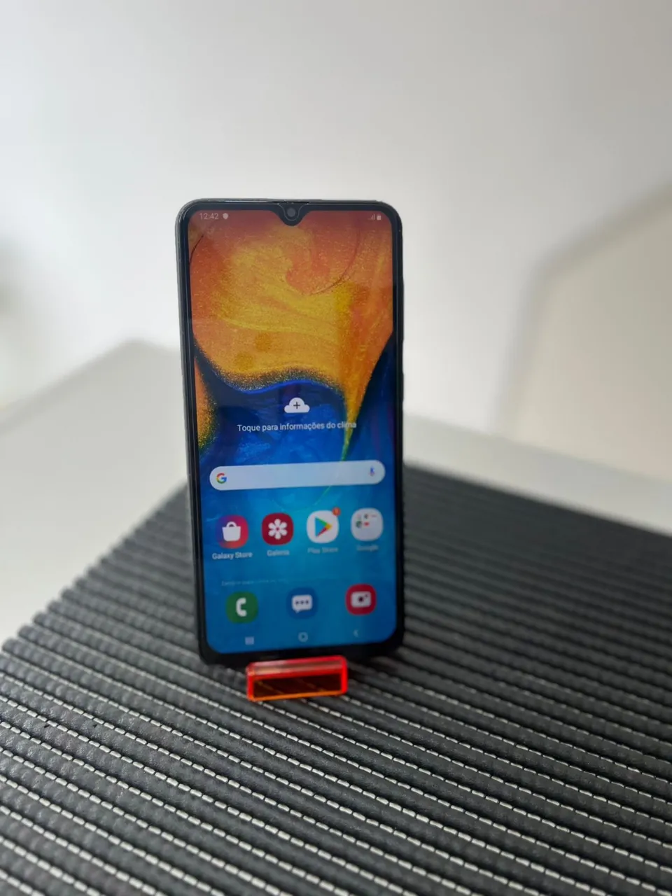 Explore o Samsung A20, um smartphone que combina design elegante e desempenho confiável. Capture fotos incríveis com sua câmera e desfrute de uma tela vibrante para uma experiência visual imersiva. Leve, compacto e perfeito para o seu dia a dia!