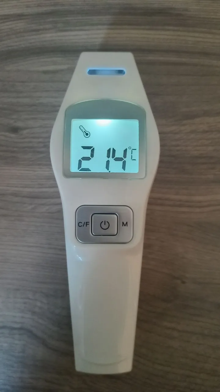 Termômetro digital infravermelho para medição de temperatura corporal. Rápido e preciso, ideal para uso doméstico ou profissional.