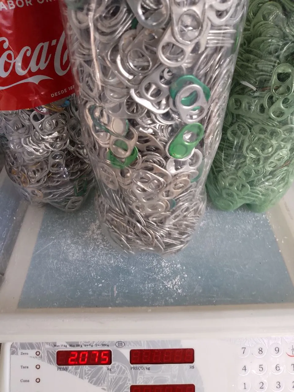 Lacre de latinhas, ideal para quem trabalha com artesanato ou reciclagem. Grande quantidade, perfeito para dar asas à sua criatividade! Cada garrafa tem em média 700 gr,